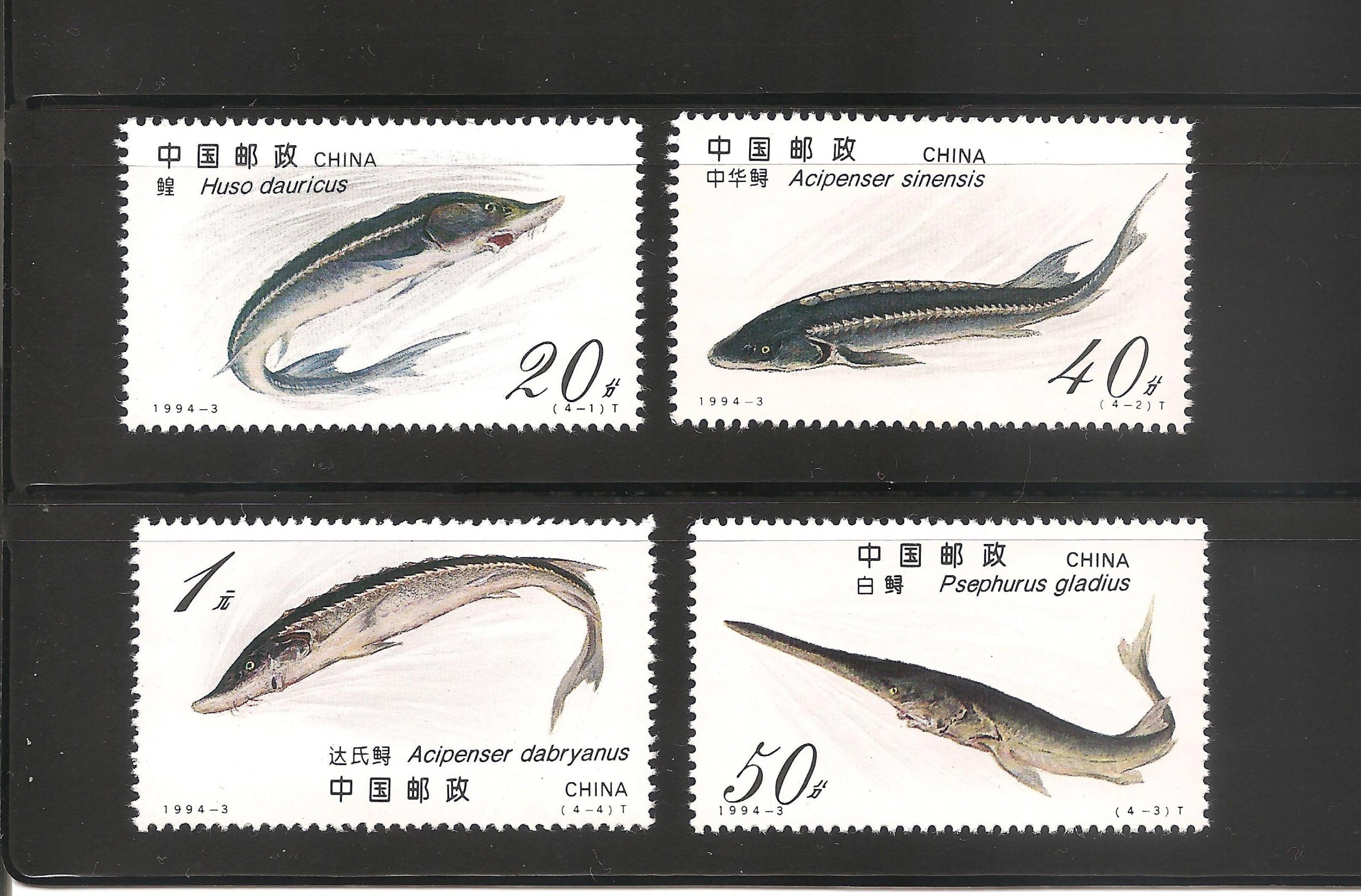 China stamps 1994-3 Scott 2487-2490 Sturgeon 鲟 Set of 4 MNH stamps