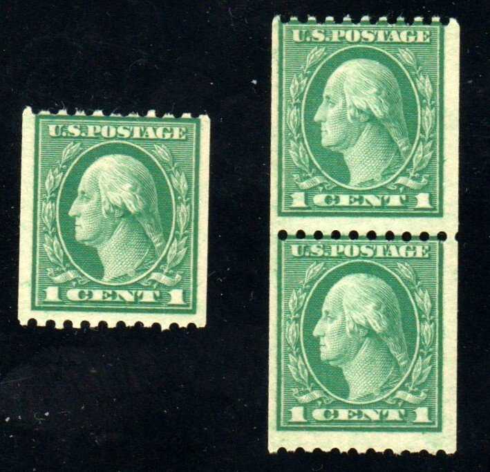 448, Mint NH 1¢ Coil Pair plus single