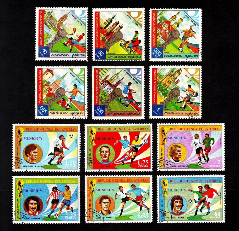 Small group of 12 different cancelled-to-order topical stamps on the theme of soccer, released by agents in 1974 during a period when Equatorial Guinea had no functioning postal system.