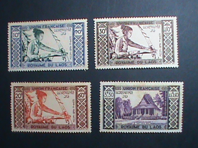 LAOS STAMP:1952- SC#C1-4-WOMAN WAVING & HUT MINT STAMP SET-VERY OLD AIRMAIL