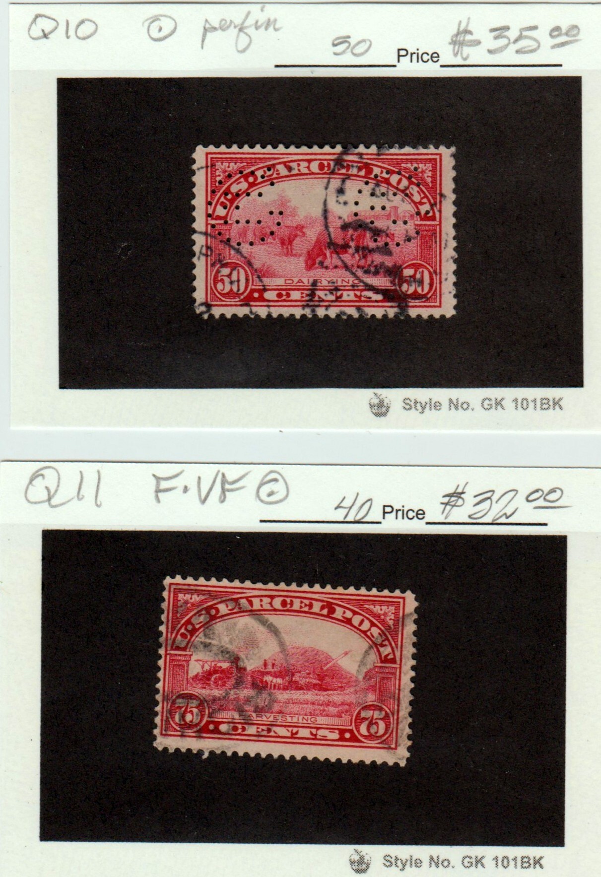 #Q10-Q11 50¢-75¢ CARMINE ROSE 1913 PARCEL POST
