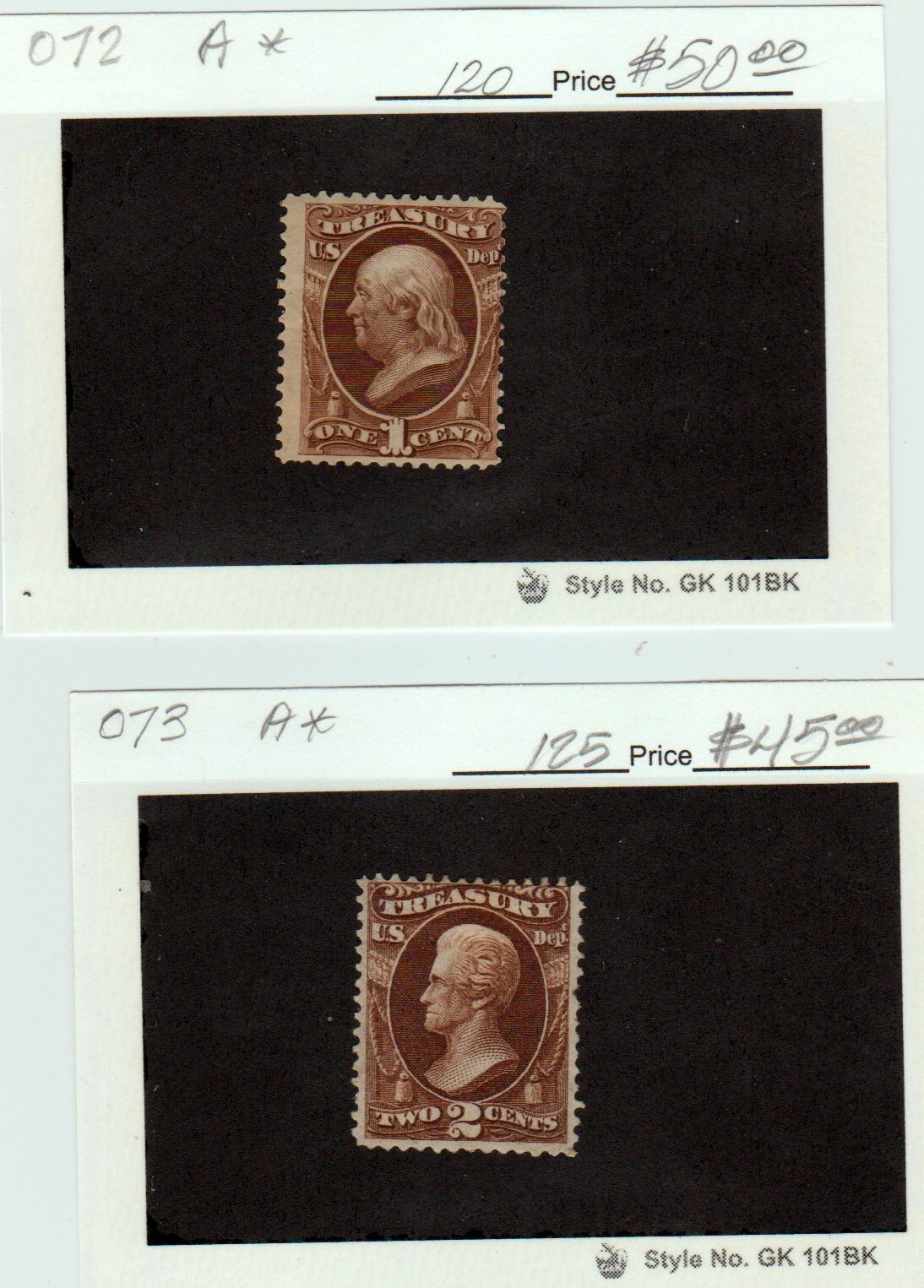 #O72-O73 1¢-2¢ Treasury Department Officials MINT OGH