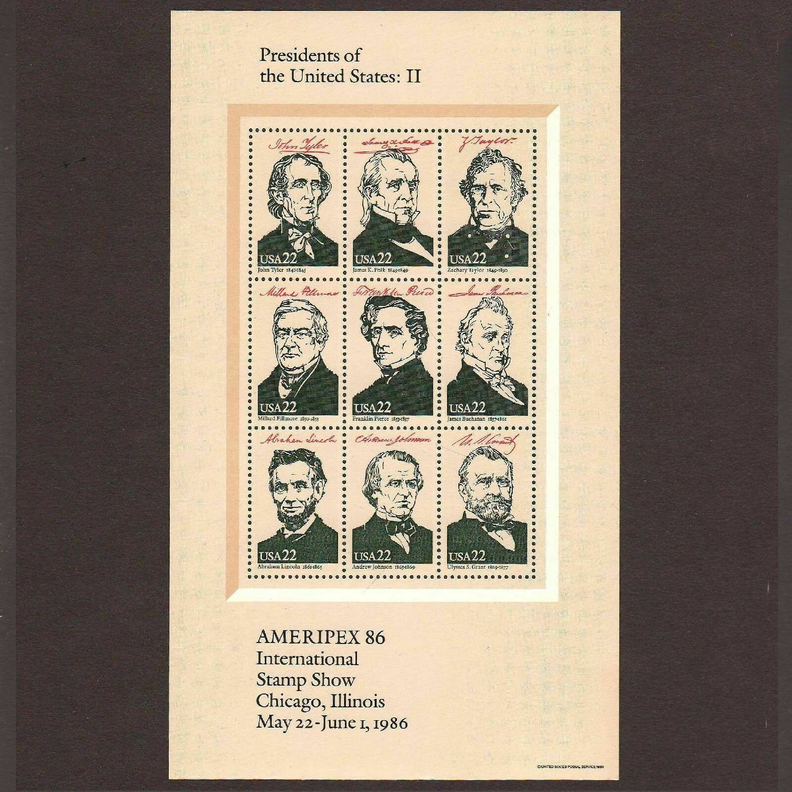Ameripex '86 President Souvenir Sheets Sc# 2216-2219