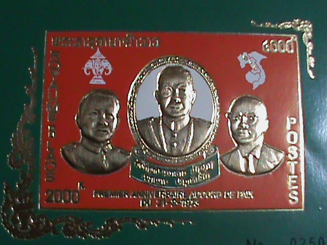 Laos -1975 sc#260 gold replica-king sisavang vong and princes s/s sheet vfSpecial very limited edition-gold replica- mnh s/s sheet. Rare