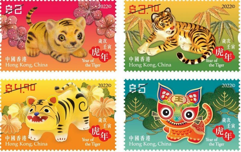 Hong Kong Lunar New Year Tiger 虎年 set (4 stamps) MNH 2022