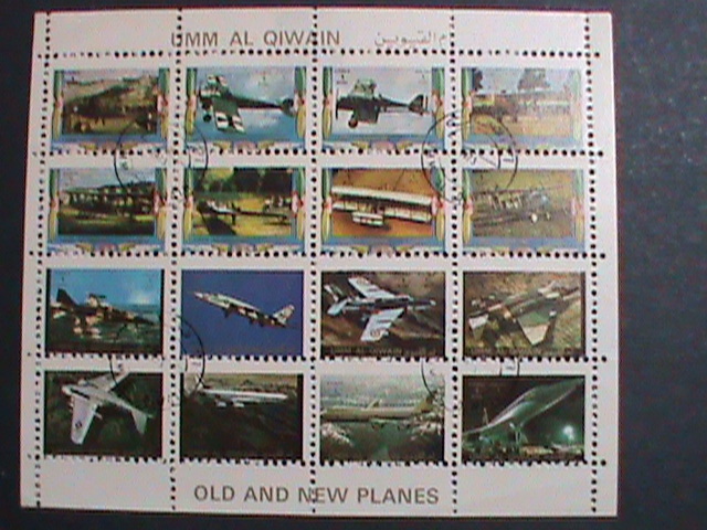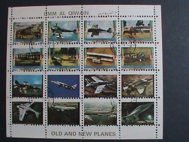 UMM AL QIWAIN-1973 WORLD FAMOUS OLD AND NEW PLANES CTO MINI SHEET VERY FINE
