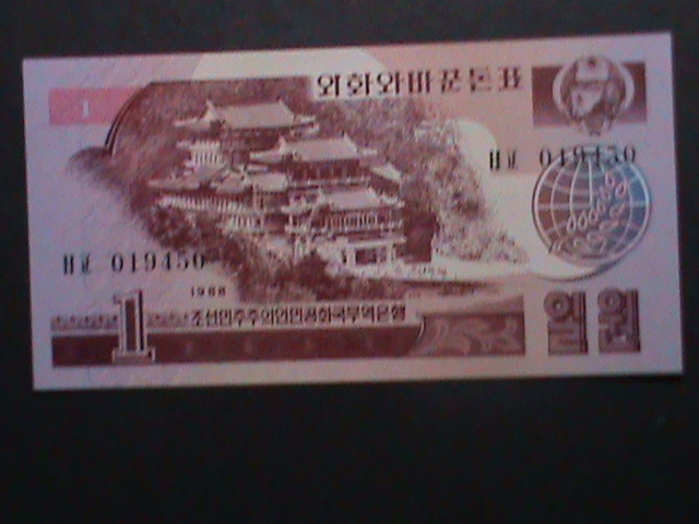 KOREA-1988 FIRST SERIES -UNCIRCULATE MINT 1 WON-BANK NOTE -VERY FINE-RARE