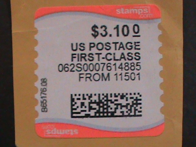 UNITED STATES-2009 SC#1CVP106 WAVE LINE-CUT SQUARE COMPUTER VENDED STAMP -
