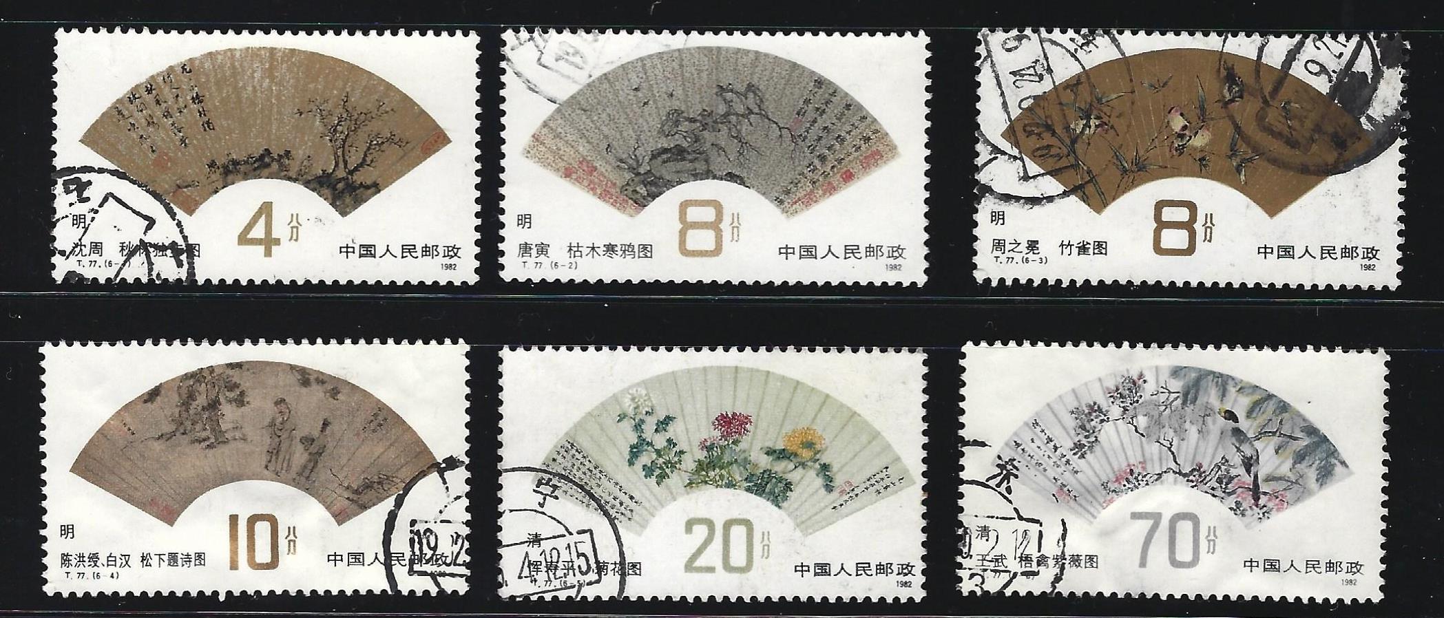 1982 T77 Scott #1792-1797 Fan Paintings of Ming and Qing Dynasties 明清扇面画. This is a full set, all used, 6-4 & 6-6 aren't that good.I combine shipping on multiple purchases and charge one shipping fee only. If you plan to buy multiple sets of stamps/albums/folders/coins, please let me know and wait for the combined invoice to pay.如果你要买多张/套邮票/本邮票册/个钱币的话,请告诉我一声。我可以把几项交易合拼一起,统发一张帐单,只收一次寄费。请等我出了综合帐单后才付钱.