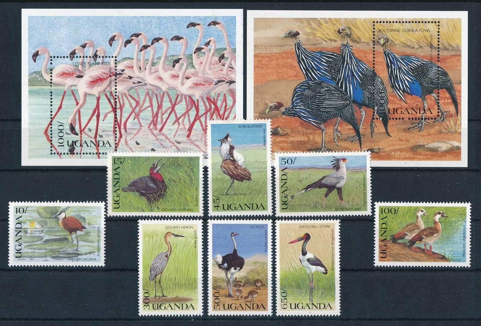 Grade: Ungraded[110671] Uganda 1990 Birds v�gel flamingo ostrich with 2 souvenir sheets MNH Mint Never Hinged Very Fine ConditionCatalogue numbers according to Michel if noted813-820, Bl. 120-121Standard Shipping and International Standard Delivery is without tracking number. Economy Shipping and Hip International Standard delivery is a registered letter with tracking code. A signature is required. STANDARD SHIPPING AND INTERNATIONAL STANDARD DELIVERY IS AT BUYERS RISK Shipping to China, Russia and former Sovjet States, Romania, Bulgaria, Albania, India, Turkey, Indonesia, Malaysia, all African countries by Registered Mail only! World wide shipping valued at over US$100 will be sent via Registered Mail only. Add Hip International Standard delivery as shipping option! Countries in Latin America valued at over US$ 50 will be sent via Registered mail only! Add Hip International Standard delivery as shipping option! We ship lots paid for at least within 4 days. We are not responsible for uninsured or unregistered mail. By bidding or buying any lots you agree with the above terms of shipping. EUROPOST-STAMPS, THE NETHERLANDS SINCE 1986 IN STAMP, COIN AND BANKNOTE BUSINESS MEMBER OF STAMPDEALERS ASSOCATIONS"width=900">Track Page Views WithAuctiva's Counter