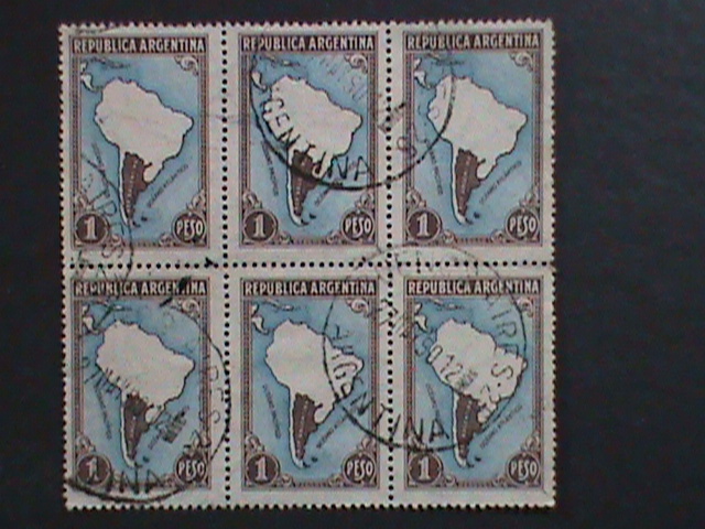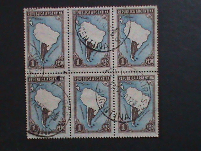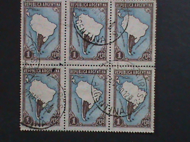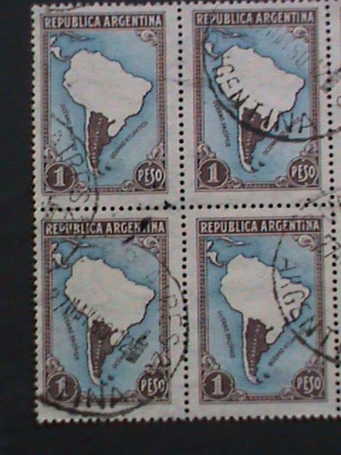 ARGENTINA-1935 SC#446 MAP OF SOUTH AMERICA- USED BLOCK WE SHIP TO WORLDWIDE