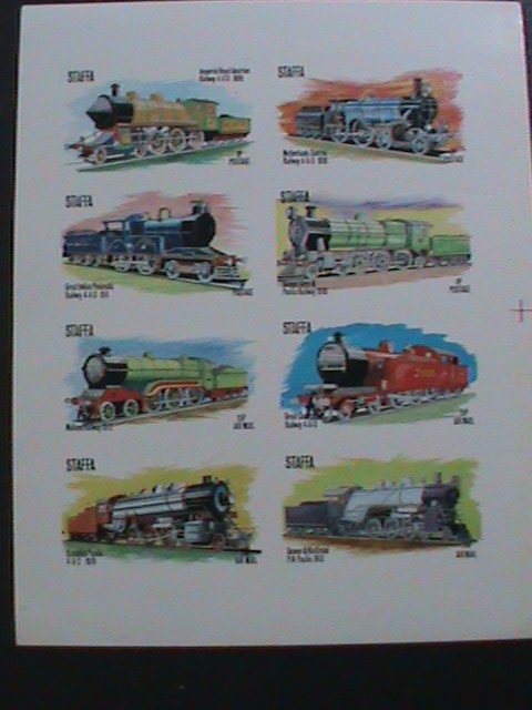 STAFFA-SCOTLAND -PROMOTION WORLD FAMOUS TRAINS-IMPERF MNH S/S -EST.$14 VF