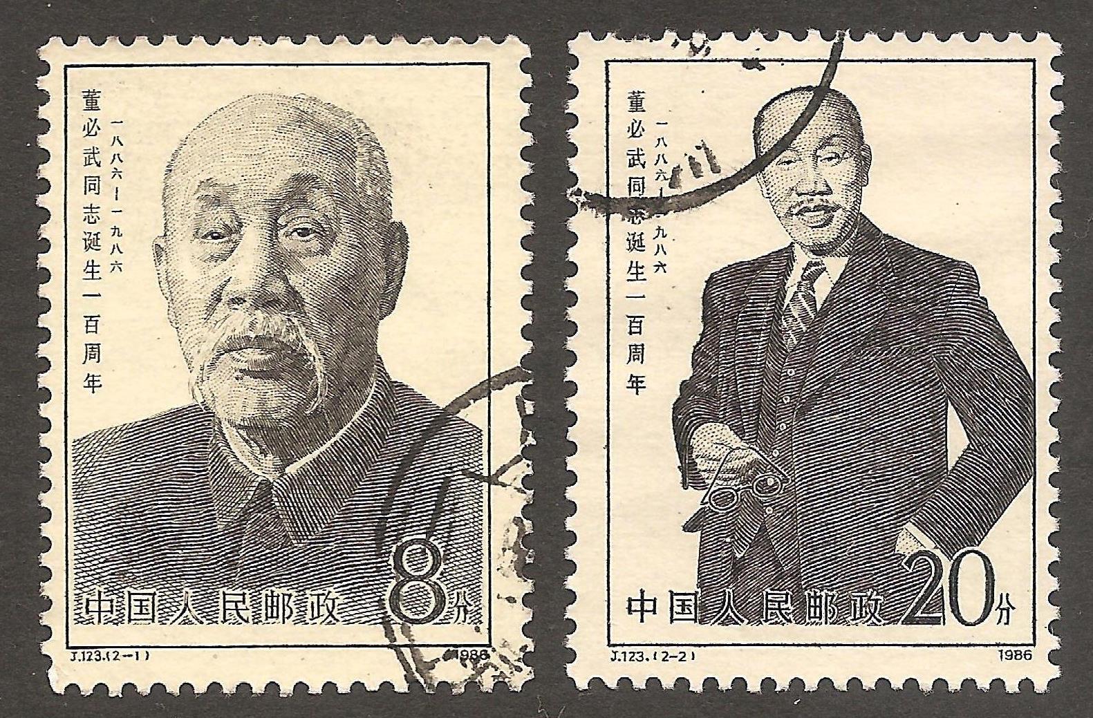 China stamps 1986 J123 Sct #2026 Cent. of Birth of Dong Biwu 董必武. Set of 2 used.