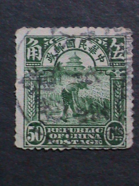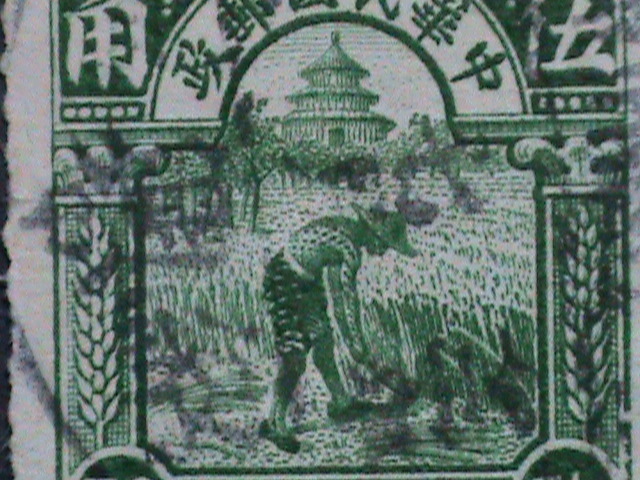 CHINA-1913-SC# 216-FARMER REAPING RICE USED- 109 YEARS OLD STAMP-VERY FINE