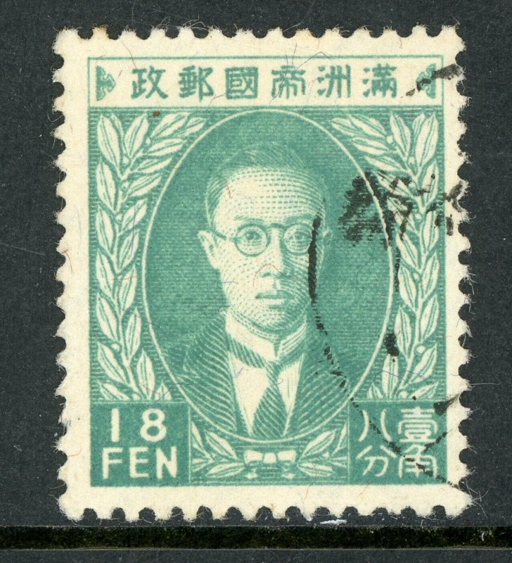 China 1935 Manchukuo 18 Fen Wmk Scott #51 Prussian Green VFU M829