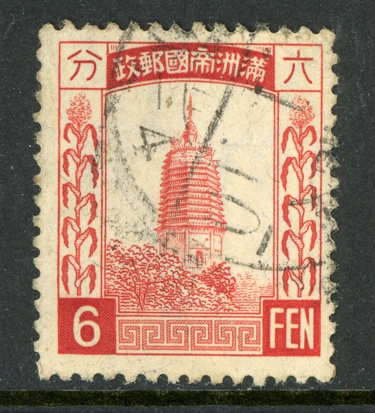 China 1935 Manchukuo 6 Fen Wmk Scott #44 Rose VFU O489