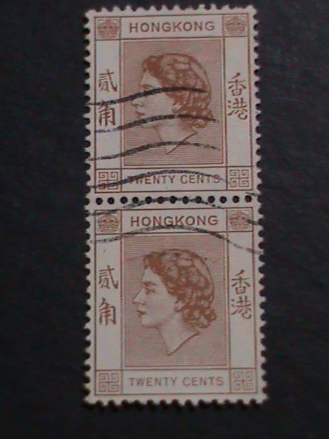 HONG KONG-1954 SC#188- 68 YEARS OLD-QUEEN ELIZABETH II USED PAIR-FANCY CANCEL