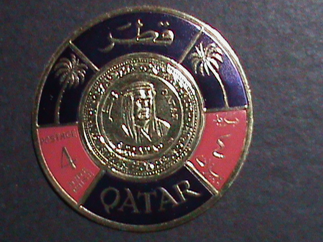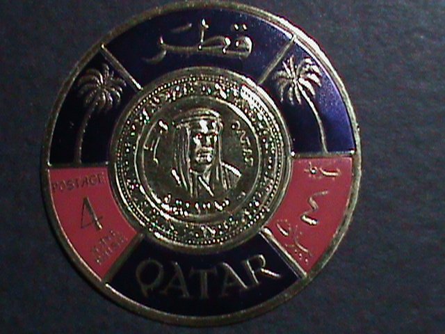 QATAR-1966 SC# 99B SHEIK AHMAD COIN-GOLD FOIL STAMP-MINT VERY FINE