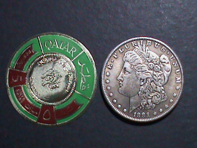 Qatar-1966 sc# 99c-reverse of sheik ahmad coin-gold foil stamp-mint vf The silver coin is for compare the size of the stamp, not included in the lot. We Ship to World Wide. We combined shipping cost for multiple i ... Read More