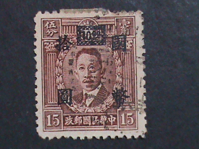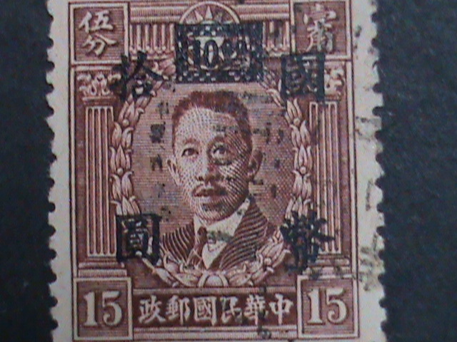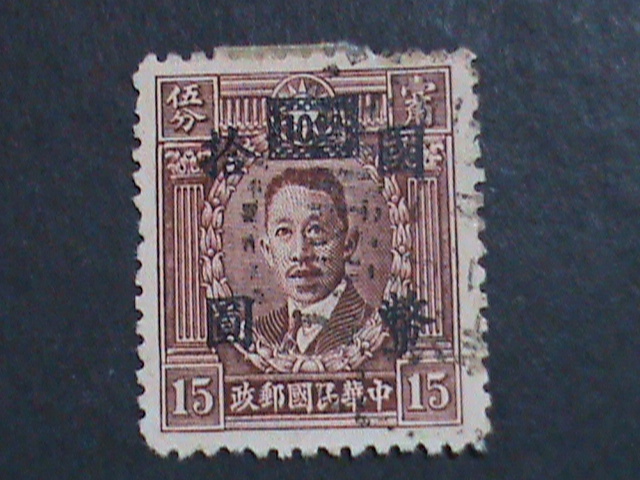 CHINA-1947-SC#653 76 YEARS OLD-LIAO CHUNG KAI SURCHARGE-$10 ON 15C USED VF