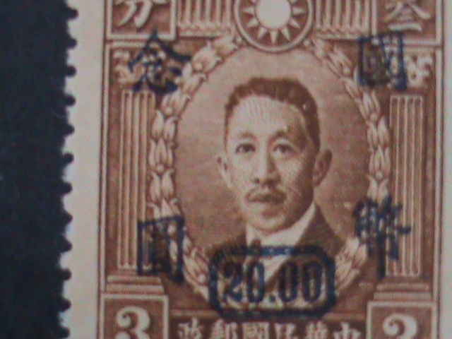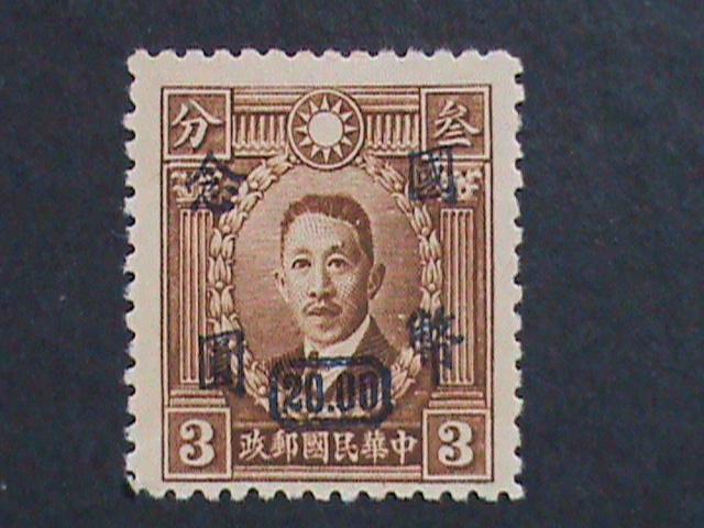 CHINA-1946-SC#720 77 YEARS OLD- LIAO CHUNG KAI SURCHARGE-$20 ON 3C MINT VF.