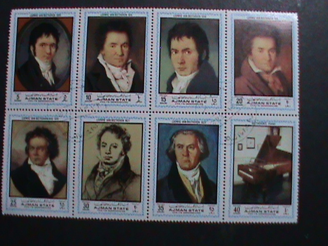 AJMAN WORLD FAMOUS MUSICIANS COMPLETE SET OF 8 CTO VF WE SHIP TO WORLDWIDE