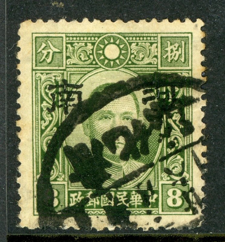 China 1942 Japan Occ Honan 8¢ Dah Tung Unwmk Olive Green Large OP VFU J473