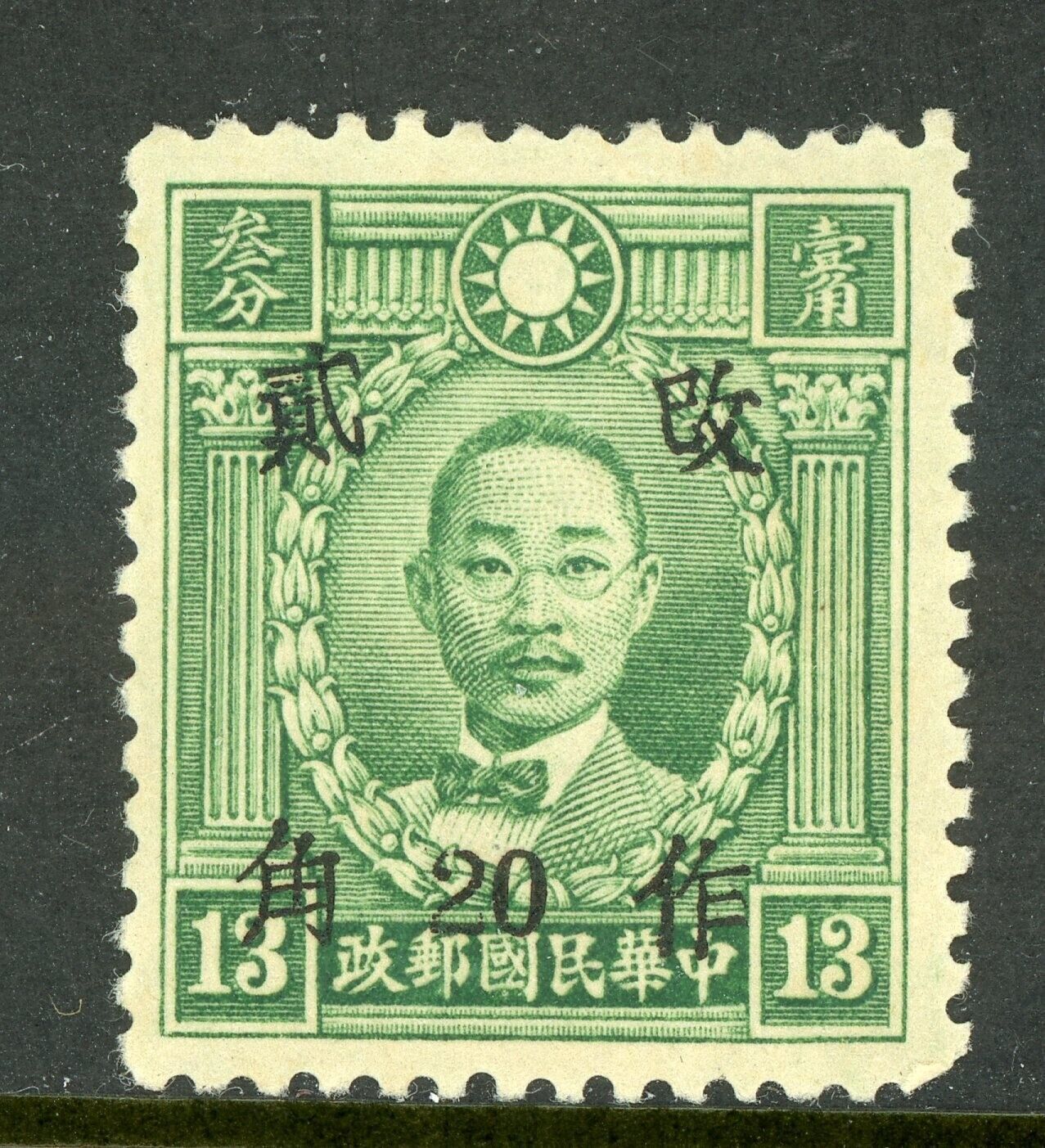 China 1942 Yunnan 20¢/13¢ HK Martyr Unwmk Wartime Sc # 535L20 Mint T120