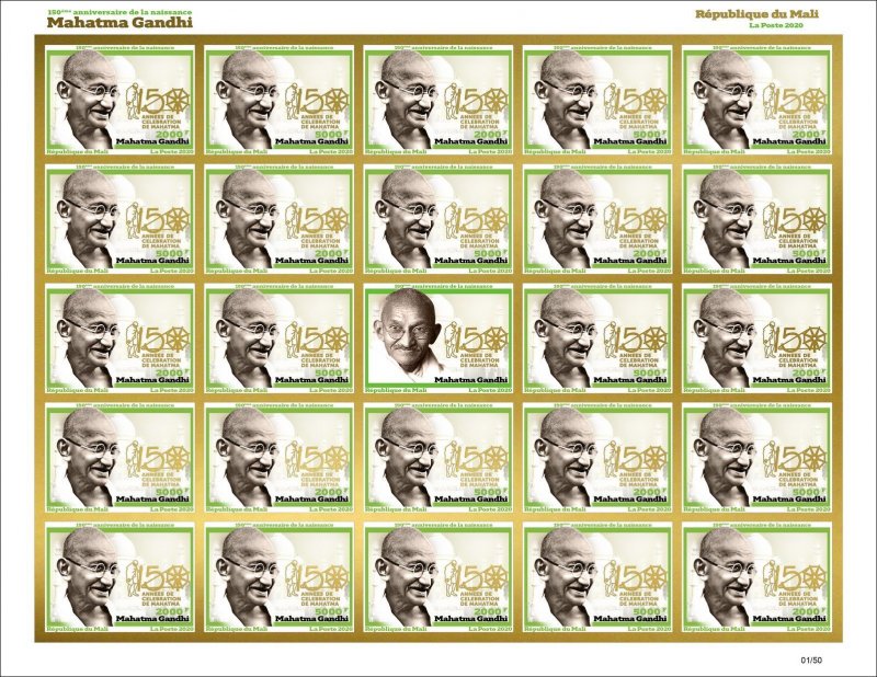 MALI 2020 ¤ GOLD EDT ¤ IMPERF MIXED SHEET 24v - MAHATMA GANDHI JOINT ISSUE MNH