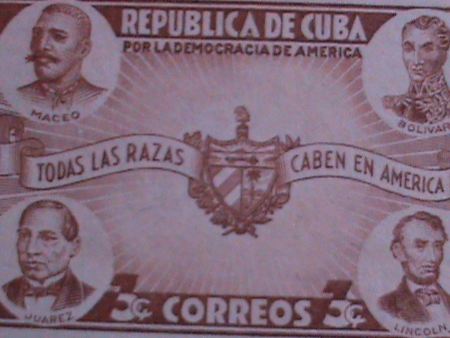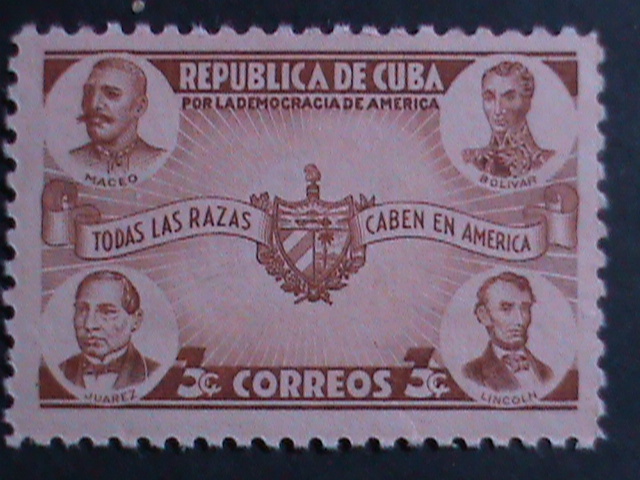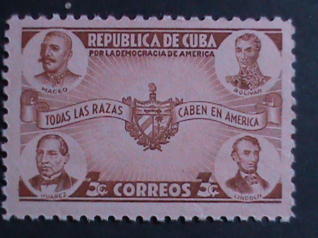 Cuba 1942 sc#369-maceo,bolivar,juarez,lincoln-sprit of democracy - mnh-og-vf-81 years old stamp-rareWe Ship to Worldwide
