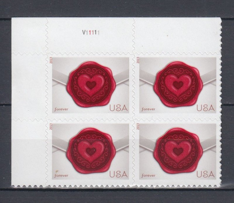 USA Sc#4741 Sealed with Love forever block of 4 MNH Plate