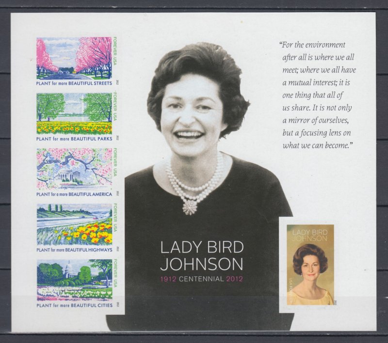 USA #4716g Lady Bird Johnson Imperforated forever sheet of 6 MNH
