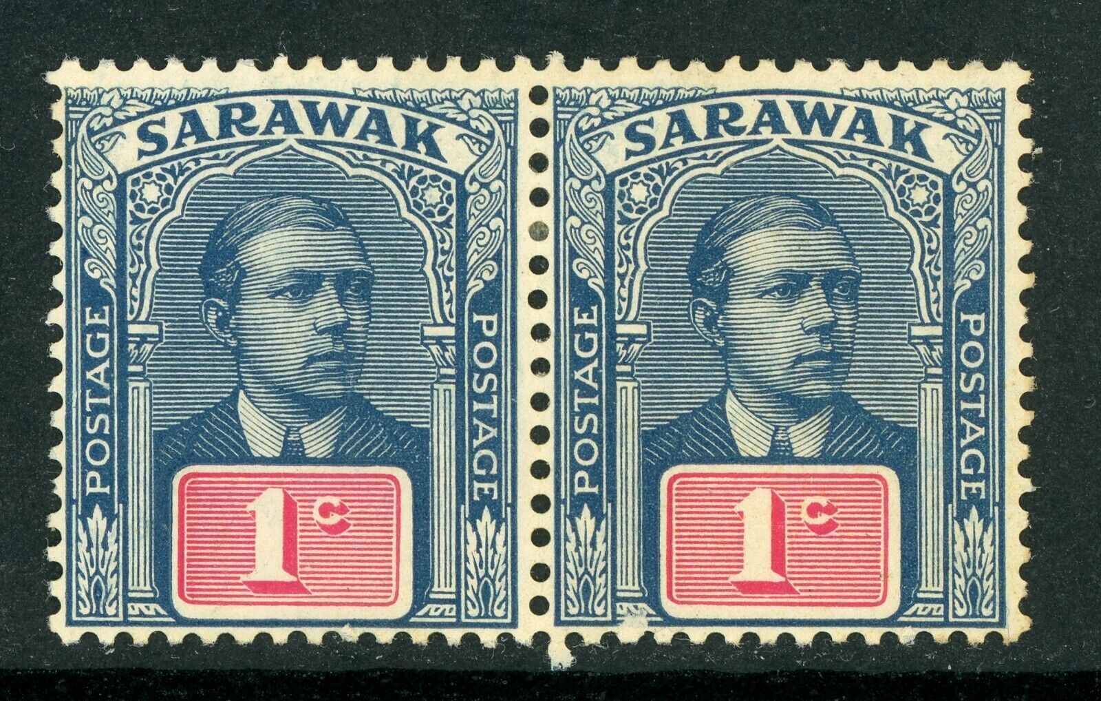 Sarawak 1926 Sir Charles Brooke 1¢ Slate Blue Pair Wmk Sc # 79 Mint X711