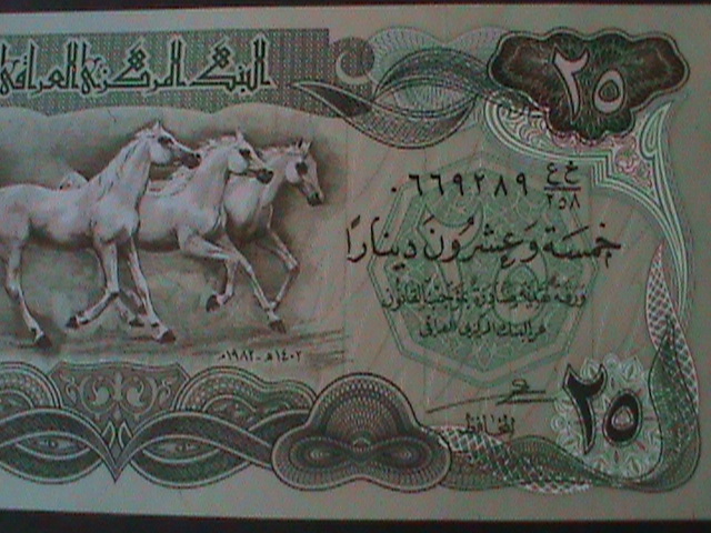 Iraq-central bank of iraq-25 dinars-un circulated-small horses bank note-paterm-4-vfWe Ship to Worldwide.