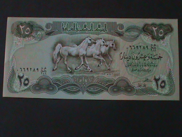 IRAQ-CENTRAL BANK OF IRAQ-25 DINARS-UN CIRCULATED-SMALL HORSES BANK NOTE-#4