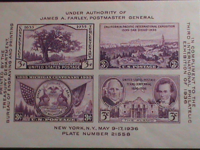 UNITED STATES-1936 SC# 778 3RD INTERNATIONAL STAMPS SHOW-VERY OLD IMPERF: S/S