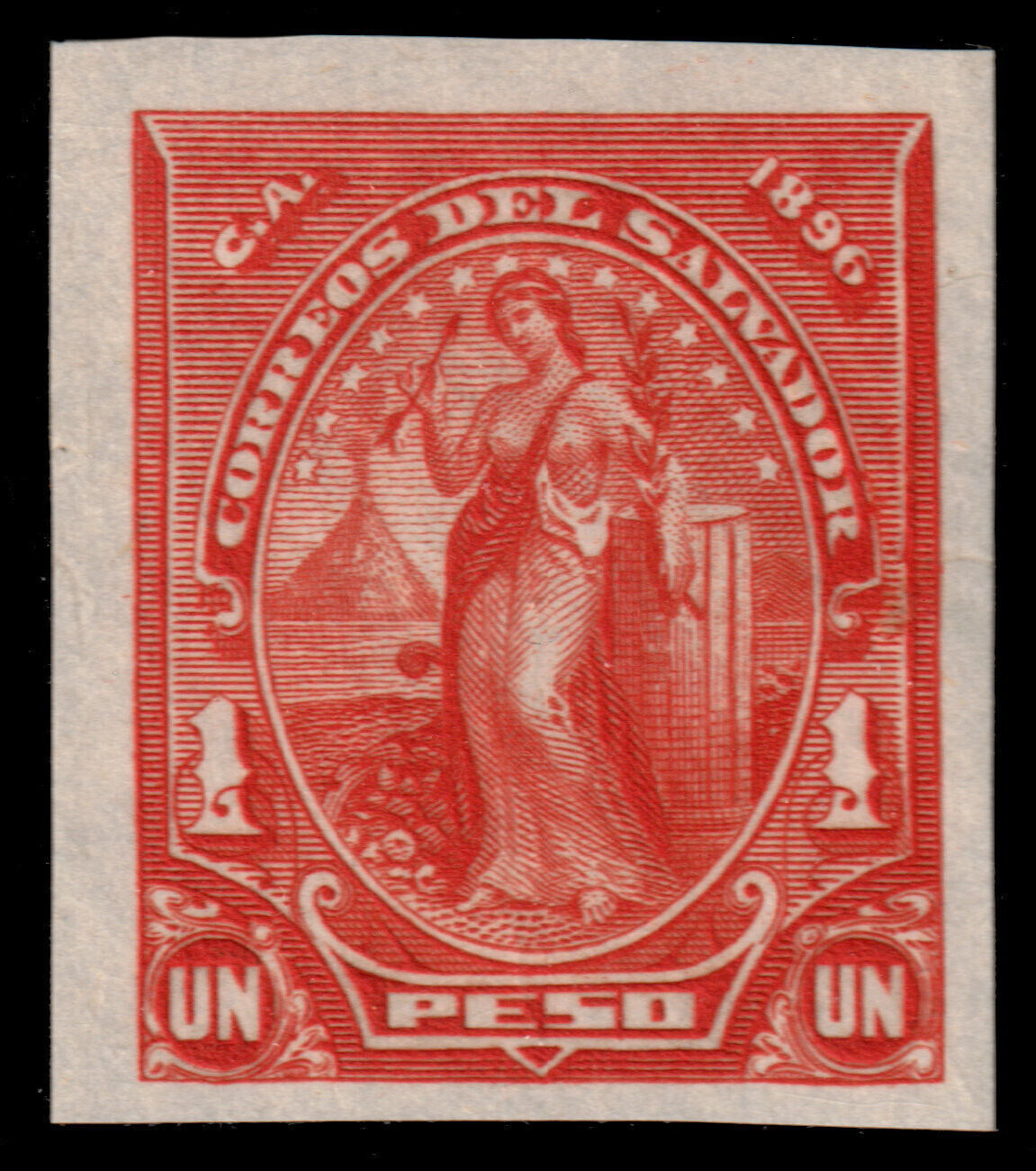 ️ EL SALVADOR 1896 - "PEACE" IMPERFORATED PROOF VERMILLION Sc. 145 MNGAI NH