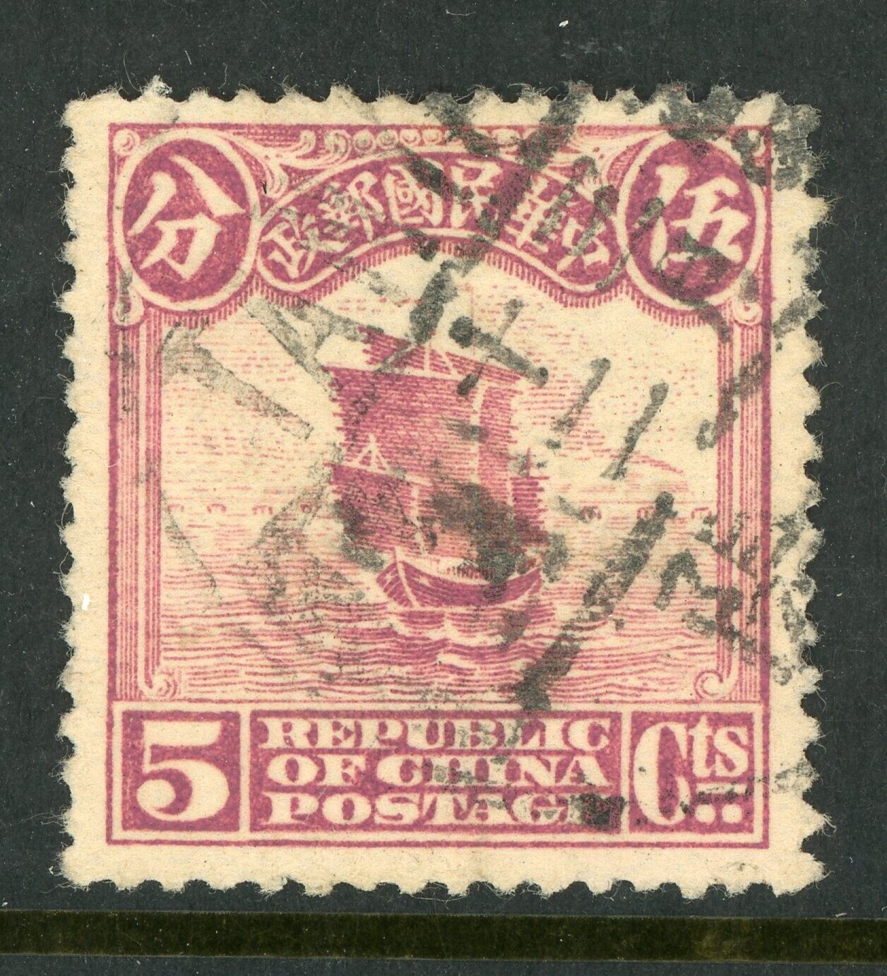 China 1915 First Peking Printing Junk 5¢ Rose Lilac Scott # 226 VFU P473