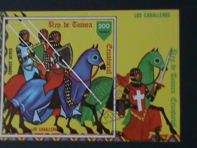Equartorial guinea-1975- famous painting-los caballeros -cto imperf s/s vf-fancy cancelWe Ship to Worldwide.