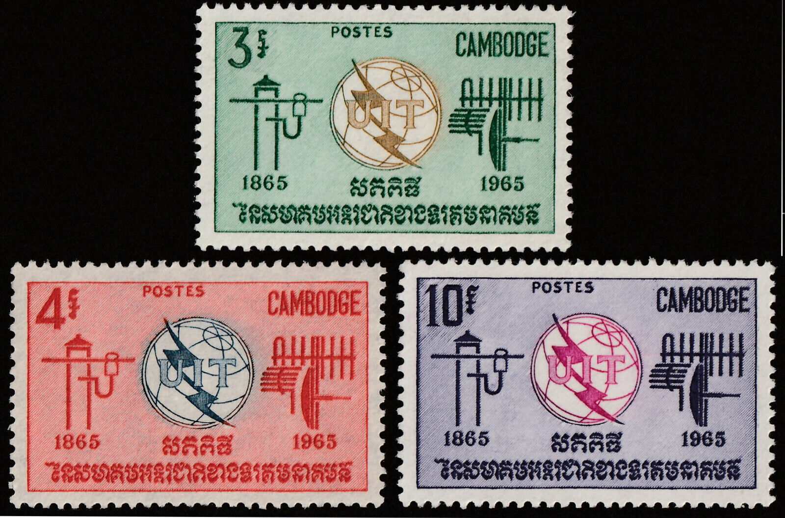 ️ CAMBODIA 1965 - ITU UIT SPACE - Sc. 146/148 Mi. 189/191 MNH ** [1KHP189]