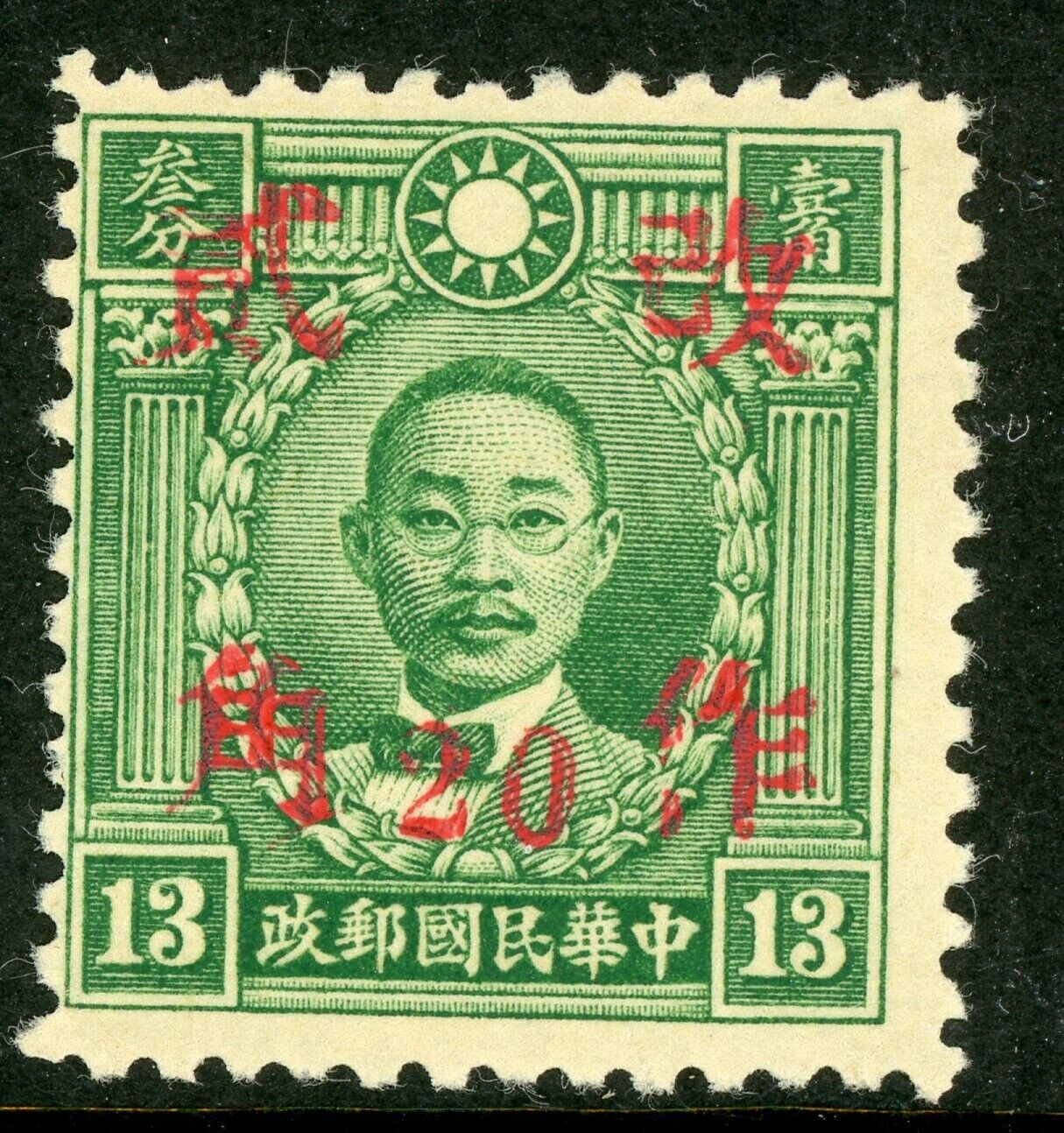 China 1942 Kwangsi 20¢/13¢ Peking Martyr Wartime SC 532i20 Variety Mint S497