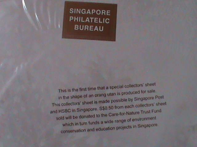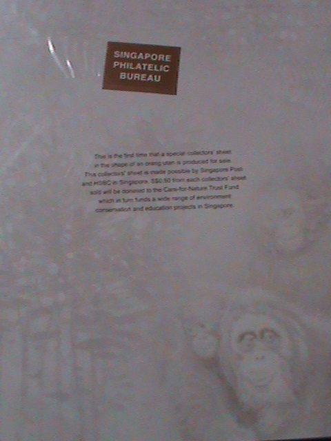 Singapore-2001- sc#893 special collector's sheet with stamps-mnh very fine-last one Limited edition with orang utan-ah meng monkey shape cut in the folder Issued by singapore philatelic bureau- hard to find -mnh ... Read More
