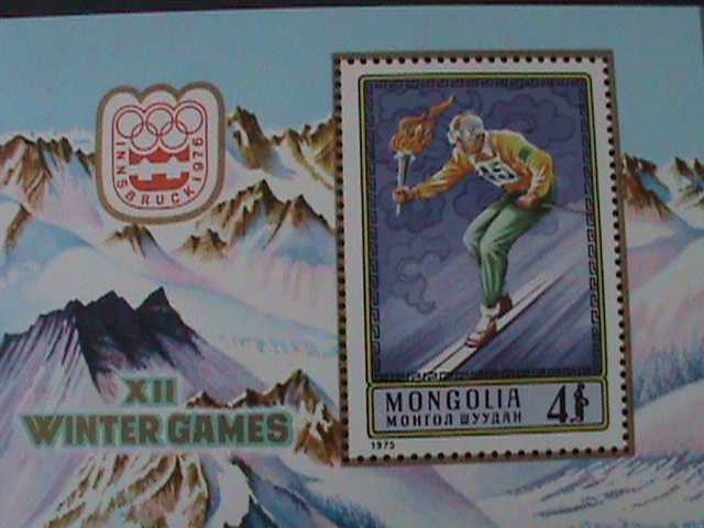 MONGOLIA-1975-SC#880 12TH-WINTER OLYMPIC GAMES-INNSBRUCK -MNH S/S-VERY FINE