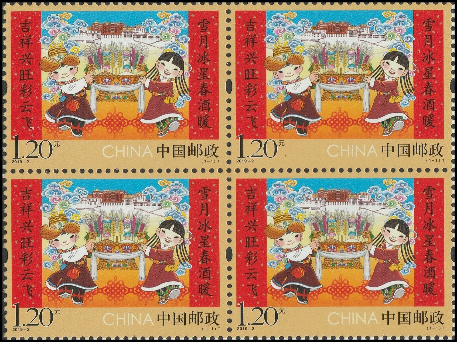 China 2019-2 Lunar New Year Greeting 拜年 block MNH