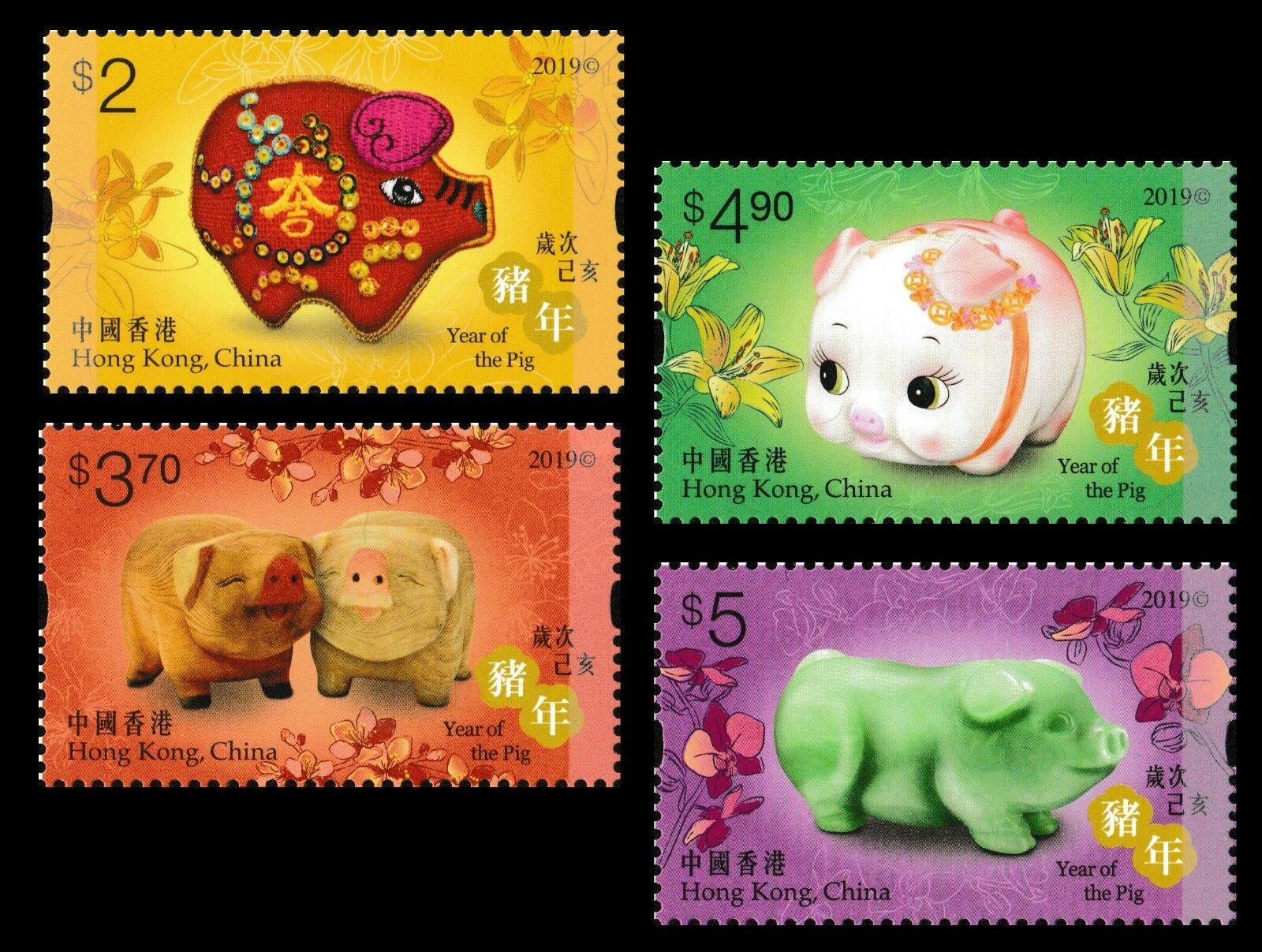 Hong Kong 2019 Lunar New Year Pig 豬年 set 4 MNH 2019