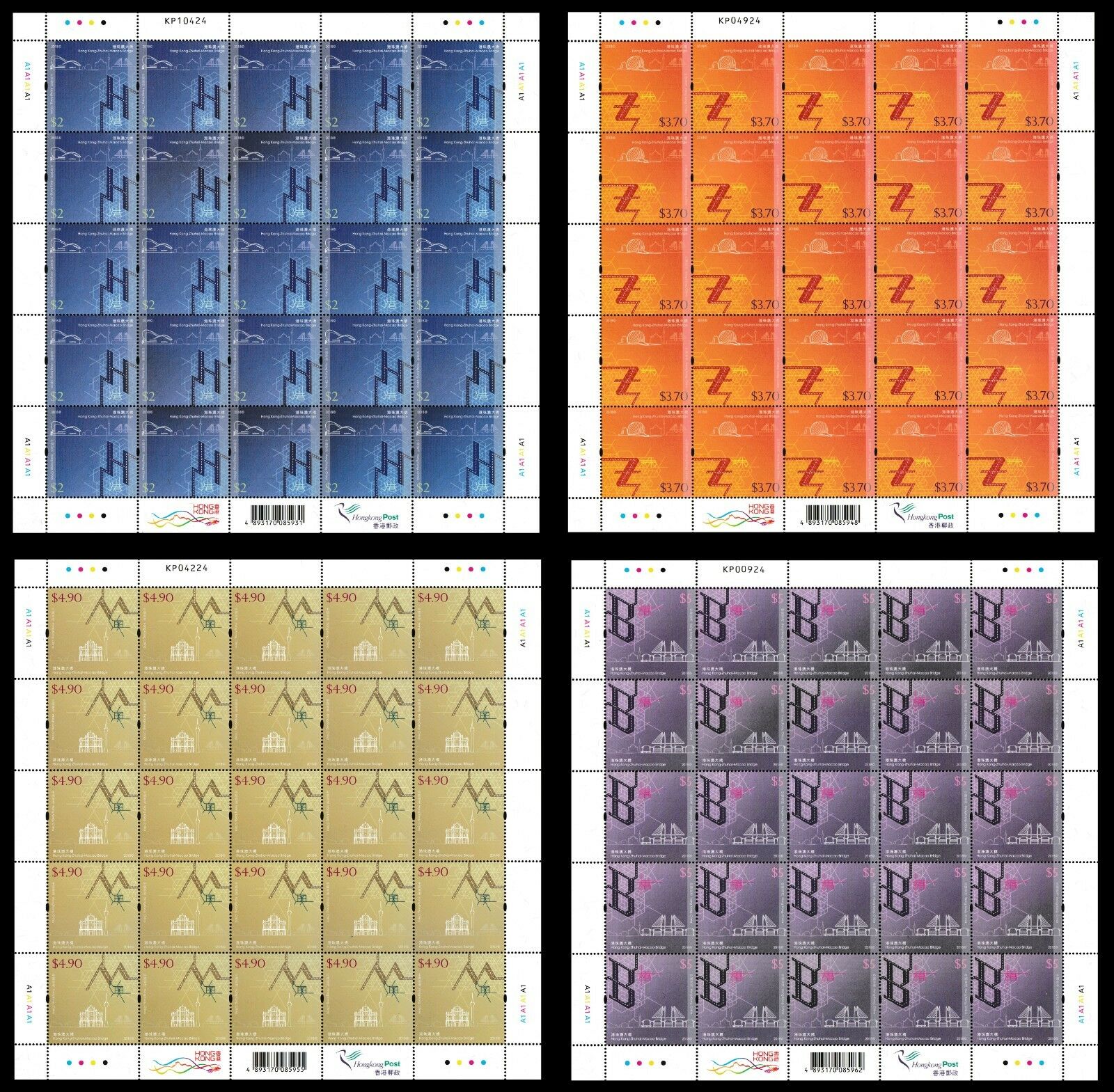 Hong Kong 2018 Zhuhai Macao Bridge 港珠澳大橋 sheet set 4 MNH