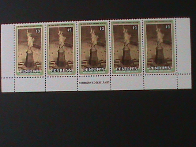 PENRHYN ISLAND-1986- SC#342 CENTENARY OF STATUE OF LIBERTY-MNH-IMPRINT STRIP-VF