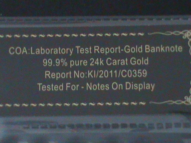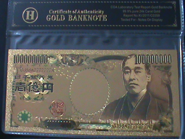 JAPAN-ONE MILLION YAN-24K GOLD REPLICA NOTE WITH CERITIFICATE OF AUTHENICITY