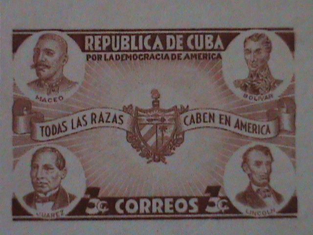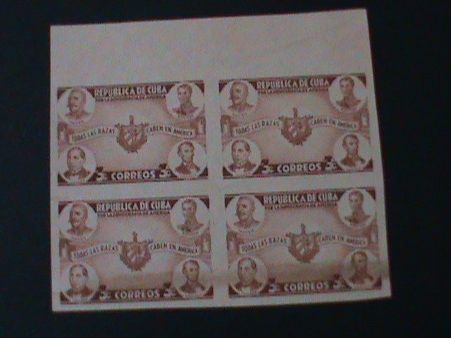 CUBA-1942- SC#369-MACEO,BOLIVAR,JUAREZ,LICOLN & ARMS OF CUBA MNH -IMPERF-BLOCK