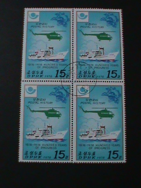 Korea-1978-sc#1673 mail steamer & helicopter-cto block fancy cancel, vf-last oneCto block with first day of issued fancy postal cencel rare hard to find